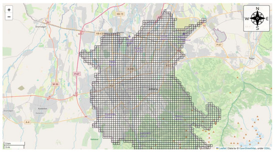 Figure 3. Division of Almaty’s territory into 500 × 500 m quadrants.
