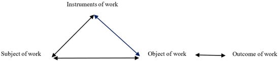 The first generation of CHAT places significant emphasis on the historicity of work actions []. The model formulated during this phase (Figure 1) perceives the object as the cognitive orientation toward work activities. Meanwhile, the historically accumulated intellectual tools and material artifacts can serve not only as enabling resources to optimize the outcome of work actions. They may also operate as constraining factors to impede work performances when, for example, the under-recognized field contribution, and dissatisfied economic and emotional needs engender bad conscience among the working individuals, thereby hindering their willingness to perform qualitatively new actions.
