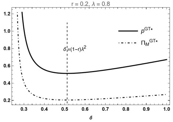 The conclusion of Corollary 3 suggests that an increase in consumer preferences does not always lead to higher earnings for the manufacturer. Similarly, an increase in commission rates does not necessarily result in greater revenue for platforms. The effect of these factors depends significantly on the magnitude of , as illustrated in Figure 2 and Figure 3. In the NT mode, the manufacturer’s revenue consistently increases with , as higher consumer preference for 3PLs providers leads to higher demand for the product, thus enabling higher pricing and revenue. However, the situation is more complex in the GT mode. In this mode, a simple increase in does not necessarily cause a rise in price. In fact, it can lead to a reduction in market demand, which results in total revenue following a trend, as shown in Figure 2. This indicates that while consumer preference for 3PLs providers increases, the platform’s reduced involvement in logistics services can dampen the overall effect on the manufacturer’s revenue.