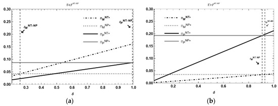 First, we examine the conditions under which the platform should provide a self-logistics service to the manufacturer. To accomplish this, our study begins by comparing the NT mode with the NP mode to assess whether the platform should offer self-logistics when the manufacturer does not implement green packaging strategies.