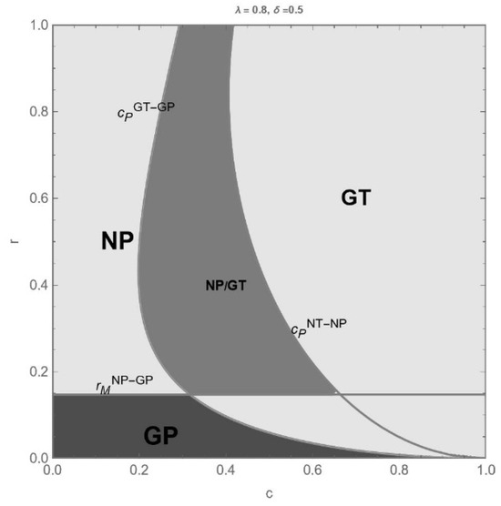 In the GP mode, the equilibrium outcomes are , , , , , .