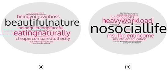 Young peoples’ thoughts on rural life; (a) Young peoples’ positive thoughts on rural life; (b) Young peoples’ negative thoughts towards the rural life.