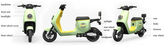 Using the comprehensive analysis of Kansei engineering and quantitative theory type I conducted earlier, Kansei imagery such as “nontraditional” and “comfort” were integrated into the design of the TWESs. This process, combined with the vehicle body and enhancing riding comfort, resulted in a target product with comprehensive design elements. The final design outcome is illustrated in Figure 10.