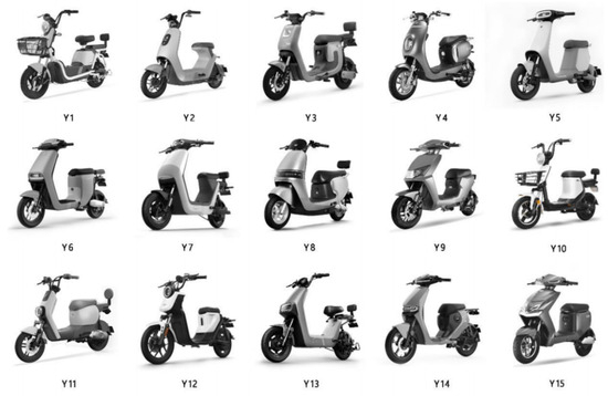 The images collected from market research were screened, and a second round of review was conducted by experts to obtain 31 images that met the same criteria as the initial sample. Subsequently, the initial sample was subjected to clustering, resulting in a final selection of 15 experimental samples for the research. These samples were randomly labeled as Y1 to Y15, as shown in Figure 7.