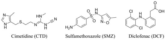 Molecular structures of CTD, SMZ, and DCF.