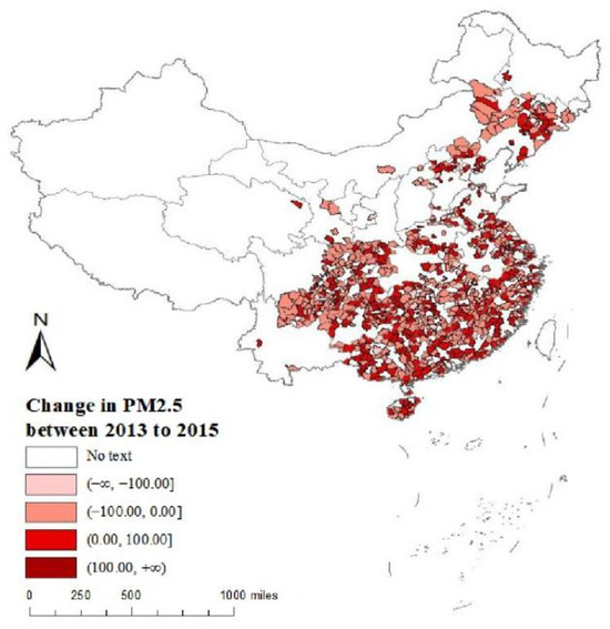 Changes in PM2.5 between 2013 and 2015.