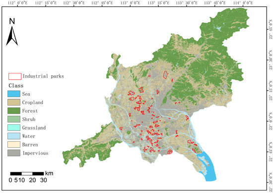 The Pearl River Delta Metropolitan Region (PRDMR) and its adjacent areas are located in the coastal region of South China, which exhibits a subtropical monsoon climate. It is warm and humid all year round, with an average annual temperature of 20–24 °C (http://ncc-cma.net/cn). With its comfortable and pleasant climate and unique geographical location, since the “Reform and Opening-up” policy in 1978, PRDMR has played a leading role in China’s economic and social development and developed into one of the most economically advanced regions in China and the most densely populated area globally [16,17,37]. In 2015, the China State Council in its 13th Five-Year Plan for Economic and Social Development strategically initiated the Guangdong–Hong Kong–Macau Greater Bay Area, with emphasis on strengthening its role in economic development [38]. PRDMR has rapid economic growth, and is a new processing industry base in China, with a large number of electronic manufacturing and assembly factories. The region is expected to evolve into a more developed urban agglomeration, possibly leading to more complex IHIE characteristics. Our study area includes Guangzhou and Foshan, which is the core area of the PRD (Figure 1).