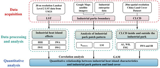 Flowchart showing the data acquisition methods and data analysis methods. Here, S refers to the area of the industrial park.