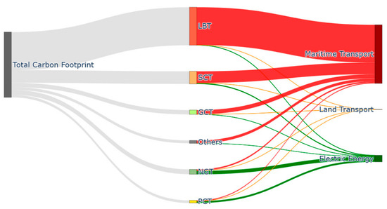 The calculations of energy consumption and carbon footprint were made on a per-movement basis for each type of cargo and then analyzed on a monthly and annual basis. Table 4 and Table 5 show energy characterization and carbon footprint averages. It can be observed that, on average, over 99% of the energy consumption and carbon footprint is attributable to Scope 3.