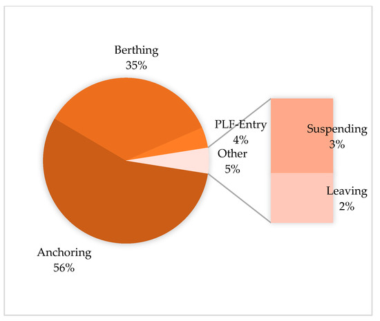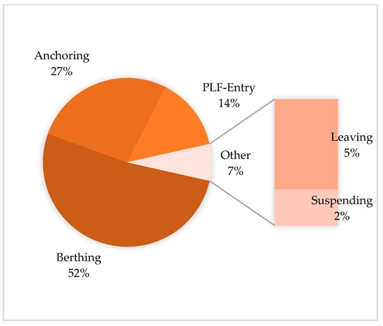Regarding the ship movement data, until 2019, the maritime transport information was obtained from the JUP. In 2020, the JUL information system replaced the previous JUP, according to Law Decree No. 158/2019 [37]. The JUL is the technological platform for defining and supporting the flow of information relating to the formalities of declaration, planning, execution, and monitoring of the maritime transport logistics chain that ports use in Portugal. This platform contains a wide range of information, including details on ship characteristics, cargo declaration, access to facilities, operations in the terminals, and other maritime logistics data. It also provides transport information on road and railway movements [43].