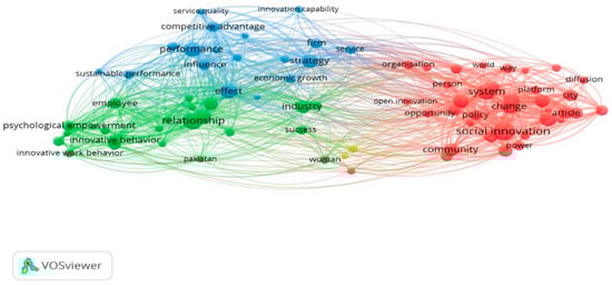 Relationship theme in studies on open innovation in the empowerment model of sustainable society through VOSviewer.