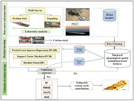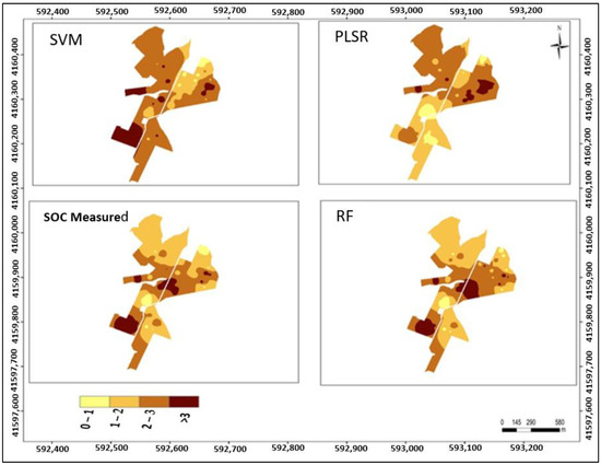 To provide an overview of the methods used for SOC mapping, we have developed Figure 1. We present a reproducible and cost-effective approach to estimate and map soil organic carbon (SOC) in Mediterranean rainfed agricultural soils using multispectral remote sensing data. This methodology was tested in several study areas by integrating remotely sensed data from unmanned aerial vehicles (UAVs) with field data and applying different predictive models. Regression techniques used included stepwise multiple linear regression, partial least squares (PLS), random forest (RF) and support vector regression (SVR) algorithms.