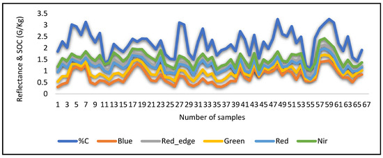 Spectral reflectance and soil organic matter (SOM) curve of soil samples.