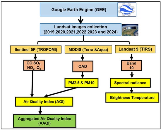 102. Bala, R.; Yadav, V.P.; Kumar, D.N.; Prasad, R. Examining the relationship of major air pollutants with land surface parameters and its monthly variation in Indian cities using satellite data. Remote Sens. Appl. Soc. Environ. 2024, 35, 101232. [Google Scholar] [CrossRef]