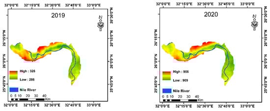 Each year, Landsat (OLI/TIRS) sensors, which record temperature data and store them as digital numbers (DNs) within a range from 0 to 255, provide the land surface temperature (LST) [80]. Each image that was used was acquired during the study years. To convert DNs to Kelvin degrees, the following steps are performed: