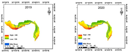 The dangers of air pollutants to humans vary depending on their types and concentrations, and because they have different determinants and units, it is challenging for the general public to predict the risk of air pollution based on concentrations beforehand. As a result, a technique is required to rate the health risks associated with various contaminants as a single number [62]. Furthermore, policymakers have suggested that air quality be shown in indices to inform and warn the public about the dangers of pollution [63]. A model called the Air Quality Index (AQI) is used to convert air pollutant concentrations into a single value that indicates the state of the air quality. In the literature, there are numerous air pollution indices with various names, such as the Pollution Standard Index (PSI), Air Quality Index (AQI), and Air Pollution Index (API) [64,65]. Based on the principle of their calculating method, there are two types of AQIs. The first kind uses the highest sub-index as the AQI. With this kind of AQI, a lot of information is eliminated and public awareness is raised [66]. On the other hand, the second kind of AQI, known as aggregated AQI, aims to gather the effects of several air contaminants. It is possible to use arithmetic to aggregate the pollutants’ indices [67,68]. Thus, the primary goal of this study is to use Google Earth Engine (GEE) and the Aggregated Air Quality Index (AAQI) to track the spatiotemporal analysis of air quality over the Qena Governorate, Egypt, throughout six consecutive years: 2019, 2020, 2021, 2022, 2023, and 2024. The current investigation is considered a pioneering study and the first attempt to map the air quality index in the studied area. This offers a more thorough and precise view of the air quality in the research region, which may contribute to better environmental and public health results.