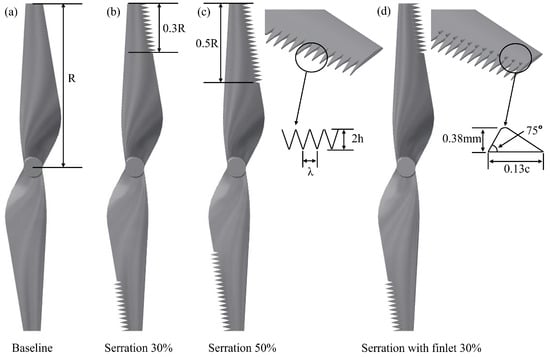 2.2. Baseline Blade and Serration–Finlet Modifications