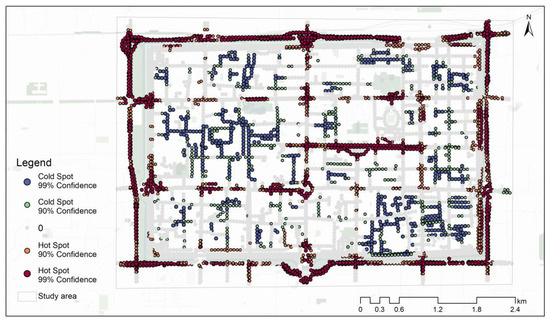 4.2.2. Spatial Patterns of Street Quality: Optimized Hot Spot Analysis