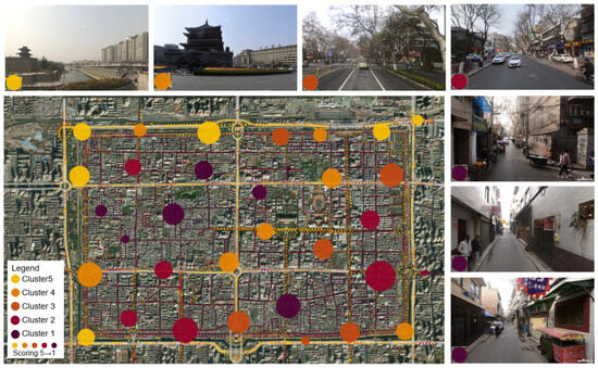 First, there is significant spatial heterogeneity in street quality within the study area. High-quality streets are mainly concentrated on main roads and around the city walls, where they benefit from well-maintained infrastructure, high levels of greenery, and good pedestrian experiences. In contrast, low-quality streets are found on secondary roads within the city, characterized by aging infrastructure, lack of greenery, and inconvenient pedestrian access.
