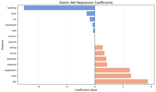 Elastic net regression analysis of street space quality and visual elements.
