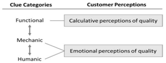 - Berry, L.L.; Wall, E.A.; Carbone, L.P. Service clues and customer assessment of the service experience: Lessons from marketing. Acad. Manag. Perspect. 2006, 20, 43–57. [Google Scholar] [CrossRef]