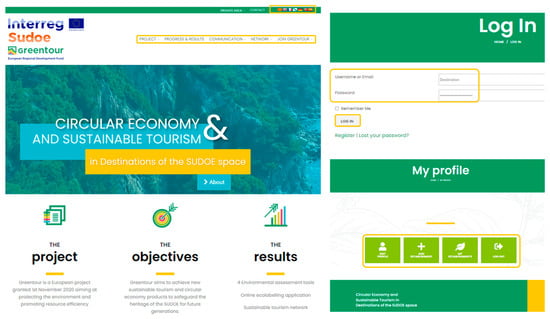 Structure of the webpage of the Greentour tool (homepage, registration, log-in) [26].