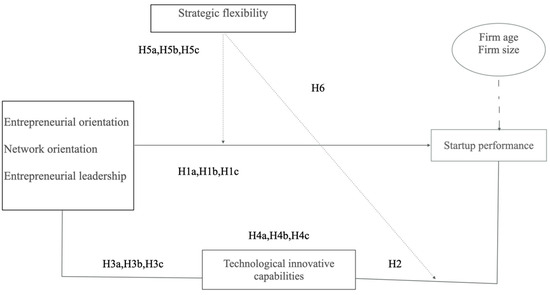 Strategic flexibility improves the technical capabilities necessary for innovation, even while it has no direct impact on innovation outcomes [4]. It enables startups to experiment with new product formulas and technologies, overcome rigid technological processes, and explore or refine alternative solutions [76]. By promoting adaptive resource allocation, strategic flexibility fosters an open corporate culture that facilitates knowledge absorption, technological adaptation, and enhanced innovation potential [77]. In emerging economies, where uncertainty is high, strategic flexibility accelerates innovation by rapidly transforming resources into novel products. Based on this reasoning, the following hypothesis is formulated: