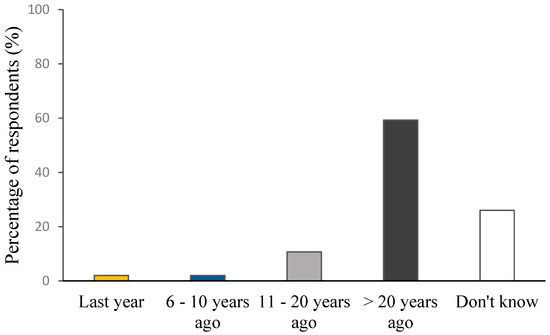 12], most respondents in the study area reported its widespread occurrence by 1956. The weed’s spread can explain this discrepancy in reported arrival times. After arriving in 1937,