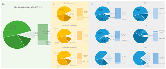 (a) the MP size distributions in general; (b) Across the different farming scales, the MP size distributions varied but not significantly (p < 0.05); and (c) between the polymer types, the MP size distributions varied significantly (p < 0.05).