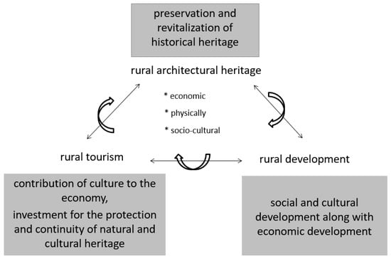 Relationship between rural architectural heritage, rural tourism, and rural development.