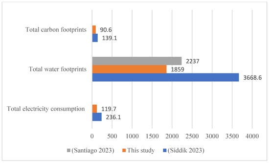 Comparison of electricity consumption, water consumption, and carbon emissions with findings from another study [1,24].