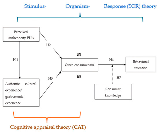 The combination of CAT and SOR allows researchers to examine internal assessment methods outlined in CAT, coupled with external stimulus–response patterns identified in SOR, which influence green consumer actions at heritage dining destinations. These integrated theories allow researchers to measure the full impact that authenticity perceptions have on emotional enjoyment alongside sustainability-oriented utilitarian results.