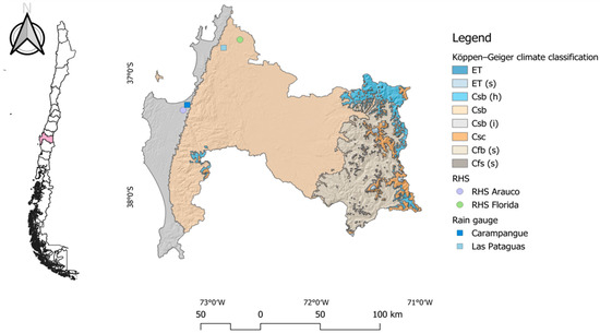 Study area. Division of climate types in the Biobío Region. Constructed by the authors with data from Sarricolea et al. [44].