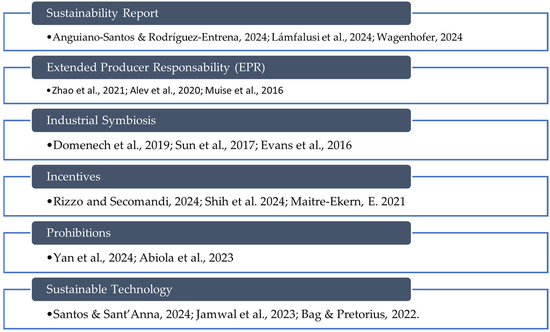 - Losa, R. Public policies on circular economy: A systematic review. Ecol. Econ. 2025, 228, 108452. [Google Scholar] [CrossRef]