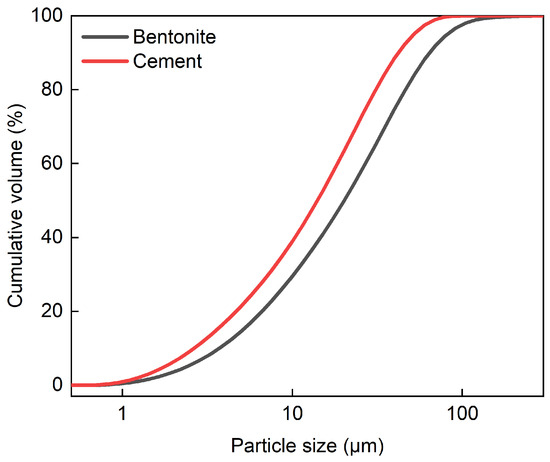 The cumulative volume of particle size of bentonite and cement.