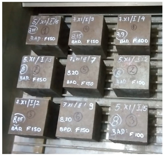 Thirty samples with dimensions of 150 × 150 × 150 mm were made (Figure 1). The samples matured for 28 days at room temperature and about 50% air humidity.