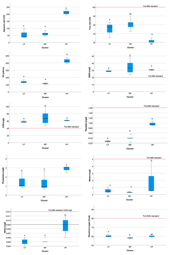 Additionally, organic pollution indicators were assessed, including chemical oxygen demand (COD), determined by the closed reflux method with potassium dichromate using a Hach DRB200 digestion block (Hach Company, Loveland, CO, USA), followed by spectrophotometric reading with a Hach DR6000 UV–Vis spectrophotometer (Hach Company, Loveland, CO, USA) (APHA 5220 D), and biochemical oxygen demand over five days (BOD5), measured by controlled incubation in a Memmert IN30 incubator (Memmert GmbH, Schwabach, Germany) (APHA 5210 B). For microbiological parameters, fecal coliforms were quantified using a Millipore manifold filtration system, followed by incubation on selective medium (m-FC agar) using the Memmert IN30 incubator (Memmert GmbH, Schwabach, Germany) (APHA 9222 D).