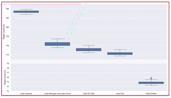 In past studies, scholars confirmed from several perspectives that the water level of the Great Lakes is critical for maintaining ecological balance, supporting economic activities, and ensuring community well-being [1,2,3,4,5]. Among these is the instability of the climate leading to erratic weather patterns that can directly affect Great Lakes water levels [6,7]. Unprecedented rainfall, extended droughts, and variable snowmelt contribute to unpredictable water volume fluctuations [8,9]. Meanwhile, the expansion of human activities, such as urbanization and agriculture, led to increased water consumption, further complicating water level management [10,11,12].