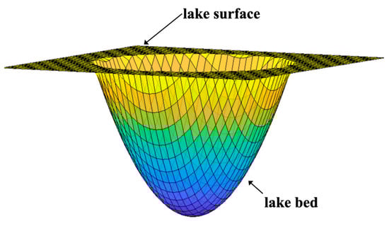 The lake bed is a smooth paraboloid, and the lake surface is a smooth plane, as shown in Figure 2.