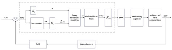 The structure of the water level fuzzy controller is depicted in Figure 7. The fuzzy controller is enclosed in a dotted-line box. It takes the target water level r(t) and the original signal of water level deviation e(k) as inputs. The actuator, in this case, is the gate that controls the water outflow from the dams. The controlled object is the water level of the lake. The fuzzy controller processes the input information, which includes the water level deviation E and the rate of change in the water level deviation EC and generates an output signal U that is used to adjust the gate opening. This structure provides a systematic way to transform the imprecise input information into a control action that can regulate the water levels in the Great Lakes.