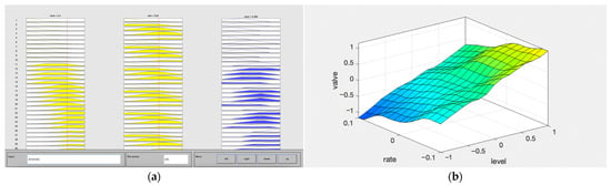 Fuzzy controller visualization diagram: (a) shows the input–output correspondence of each rule in the fuzzy system, and (b) shows the 3D surface of the mapping relationship.