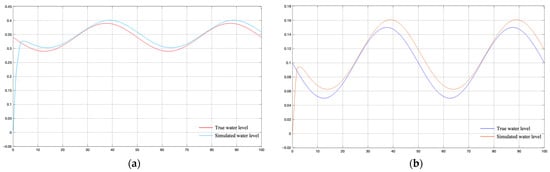 In order to evaluate the performance of the developed water level control model, Simulink simulations are performed in this paper. Without loss of generality, we simulated the control of the two lakes at the optimal water level using Lake Superior and Lake Michigan and Lake Huron as examples, as shown in Figure 11, with time on the horizontal axis and water level change on the vertical axis.