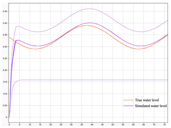 The performance of the control algorithm can be derived by observing the curves. Between the two curves at the initial time when the system gradually fits with the real water level takes about T = 5, then the two curves are highly fitted without hysteresis and the difference is basically 0, which indicates that the control algorithm is able to effectively regulate the actual water level to the target water level and keep it stable for a longer period of time.