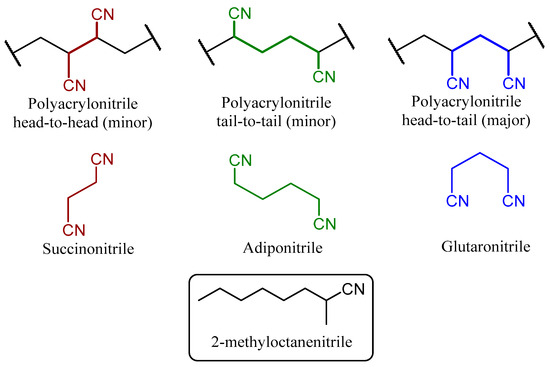 Sulfur (Dugas Diesel, Houma, LA, USA), glutaronitrile (Thermo Scientific, Mumbai, India), succinonitrile (TCI, Portland, OR, USA), adiponitrile (Thermo Scientific, Fair Lawn, NJ, USA), 2-methyloctanenitrile (Enamine, Kyiv, Ukraine), sodium borohydride (Oakwood Chemical, Estill, SC, USA), tetrahydrofuran (Sigma-Aldrich, St. Louis, MO, USA), ethyl acetate (VWR, Delaware, PA, USA), hydrochloric acid (MACRON, Delaware, PA, USA) and dichloromethane (VWR, Ottawa, ON, Canada) were used as received. PAN (Mw = 150,000) was obtained from AmBeed, Arlington Hts, IL, USA and used as received.