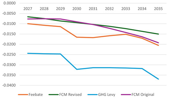 - Original GFI flexibility mechanism scenario: Maritime transport price changes resulting from the original GFI flexibility mechanism (as described in Section 2) associated with short-term measures.