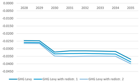 - Levy scenario: Maritime transport price changes resulting from the GHG levy (as described in Section 2) combined with short-term measures.
