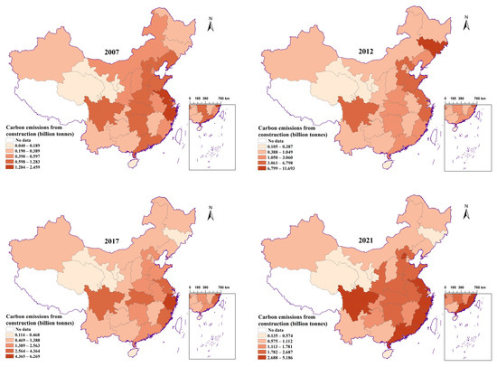 The data are sourced from the China Statistical Yearbook, China Energy Statistical Yearbook, China Construction Industry Statistical Yearbook, and China Electric Power Statistical Yearbook for the years 2007 to 2021. The CE factors refer to data promulgated by Chinese government departments («Guidelines for the Preparation of Provincial Greenhouse Gas Inventories») and relevant references and literature [52].