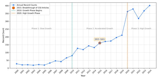 Trends in the number of publications from 2000 to 2024.