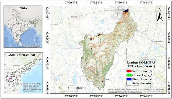 Location map of the study area with FCC bands of Landsat 8 OLI/TIRS depicting land/water.