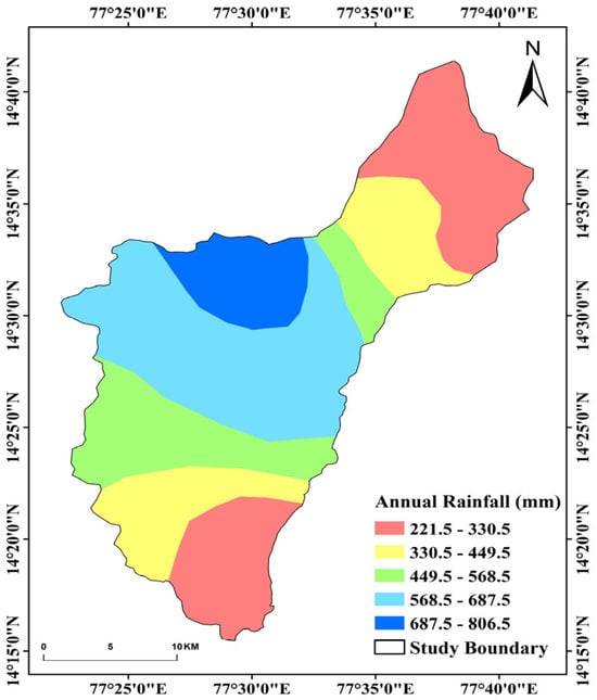 Annual rainfall map of the study area.